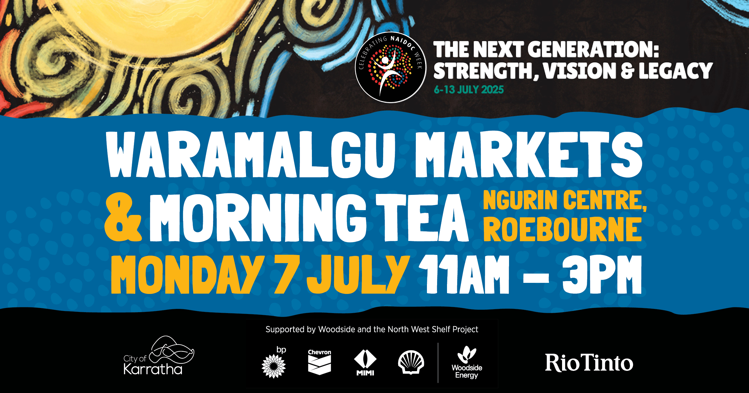 Monday 7 July from 11am to 3pm at the Ngurin Centre, Roebourne.