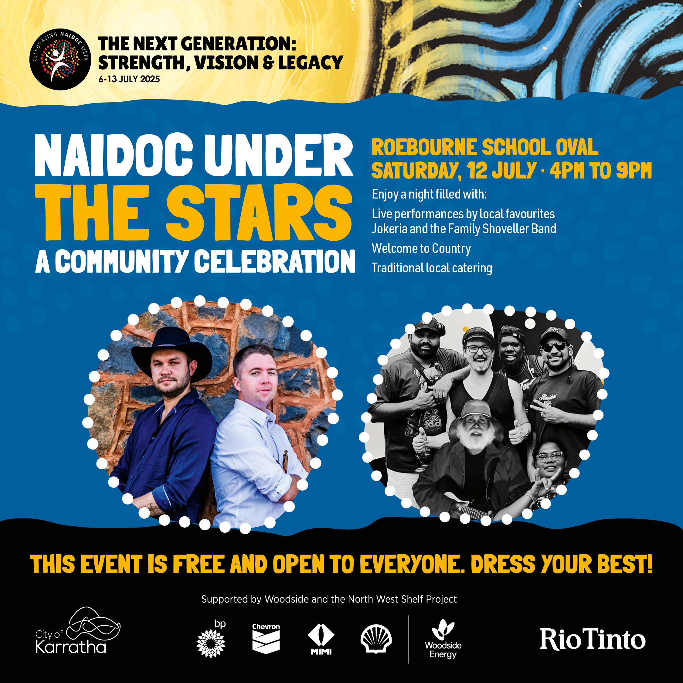 Saturday, 12 July 4pm to 9pm, Roebourne School Oval