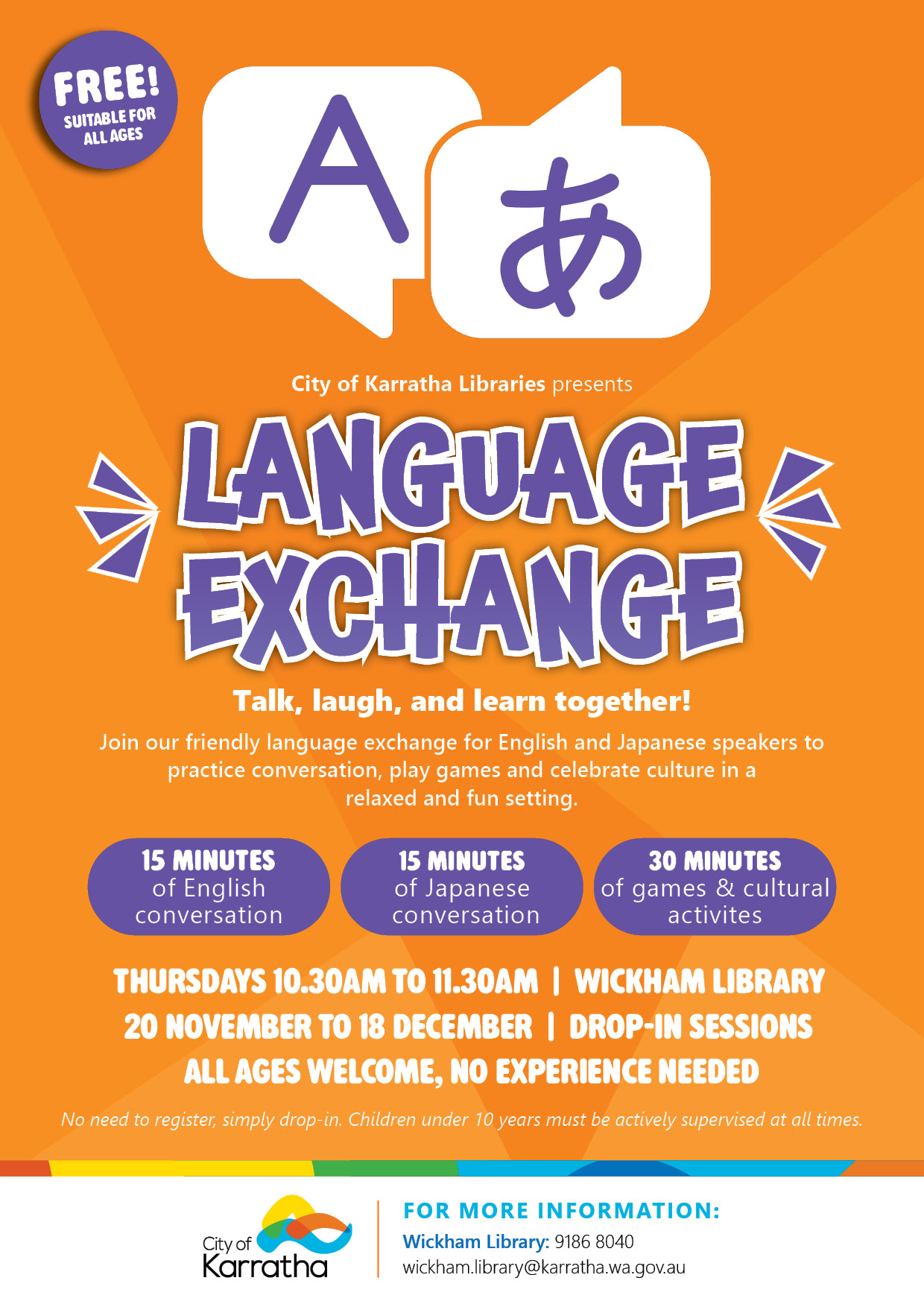 Join our friendly Language Exchange at Wickham Library for English and Japanese speakers to connect, practise conversation and share culture in a relaxed and welcoming environment.