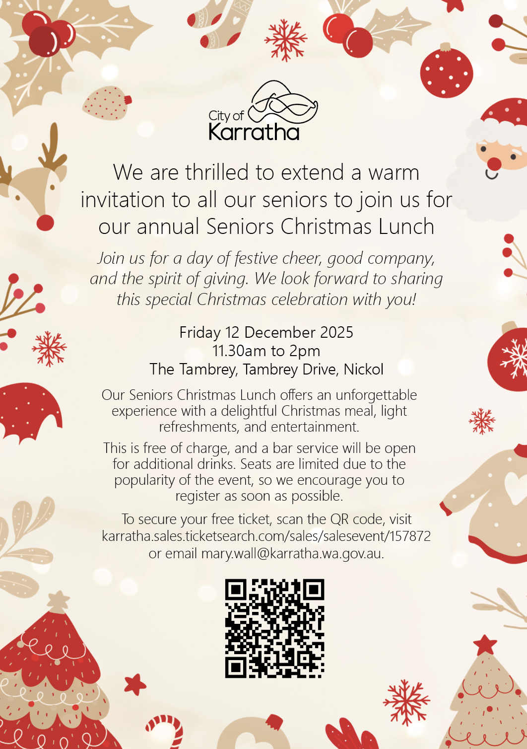 We are thrilled to extend a warm invitation to all our seniors to join us for our annual Seniors Christmas Lunch