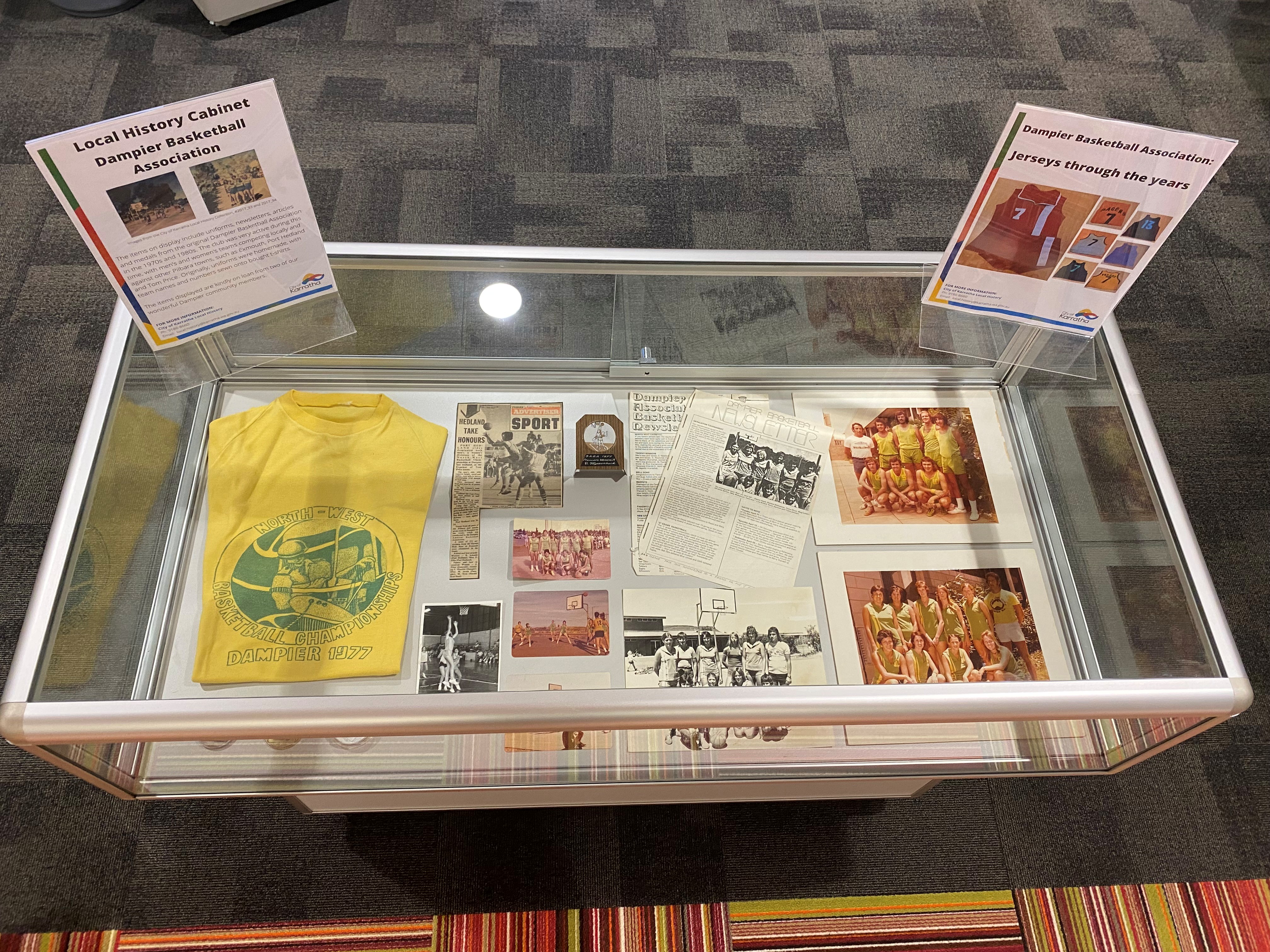 Currently on display are items and memorabilia kindly on loan from two long-time Dampier residents. Collected during their time as members of the Dampier Basketball Association in the 1970s and 1980s, the collection includes photographs, medals, newspaper articles, newsletters and uniforms.