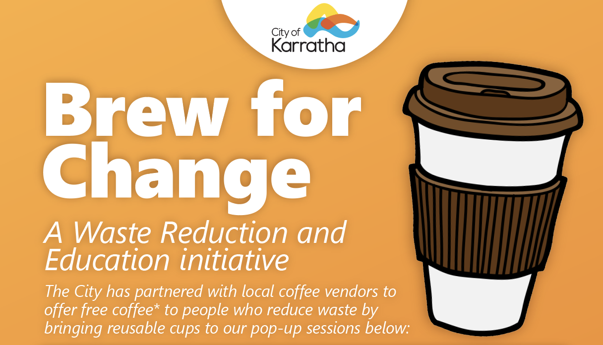 The City has partnered with local coffee vendors to offer free coffee* to people who reduce waste by bringing reusable cups to our pop-up sessions below: