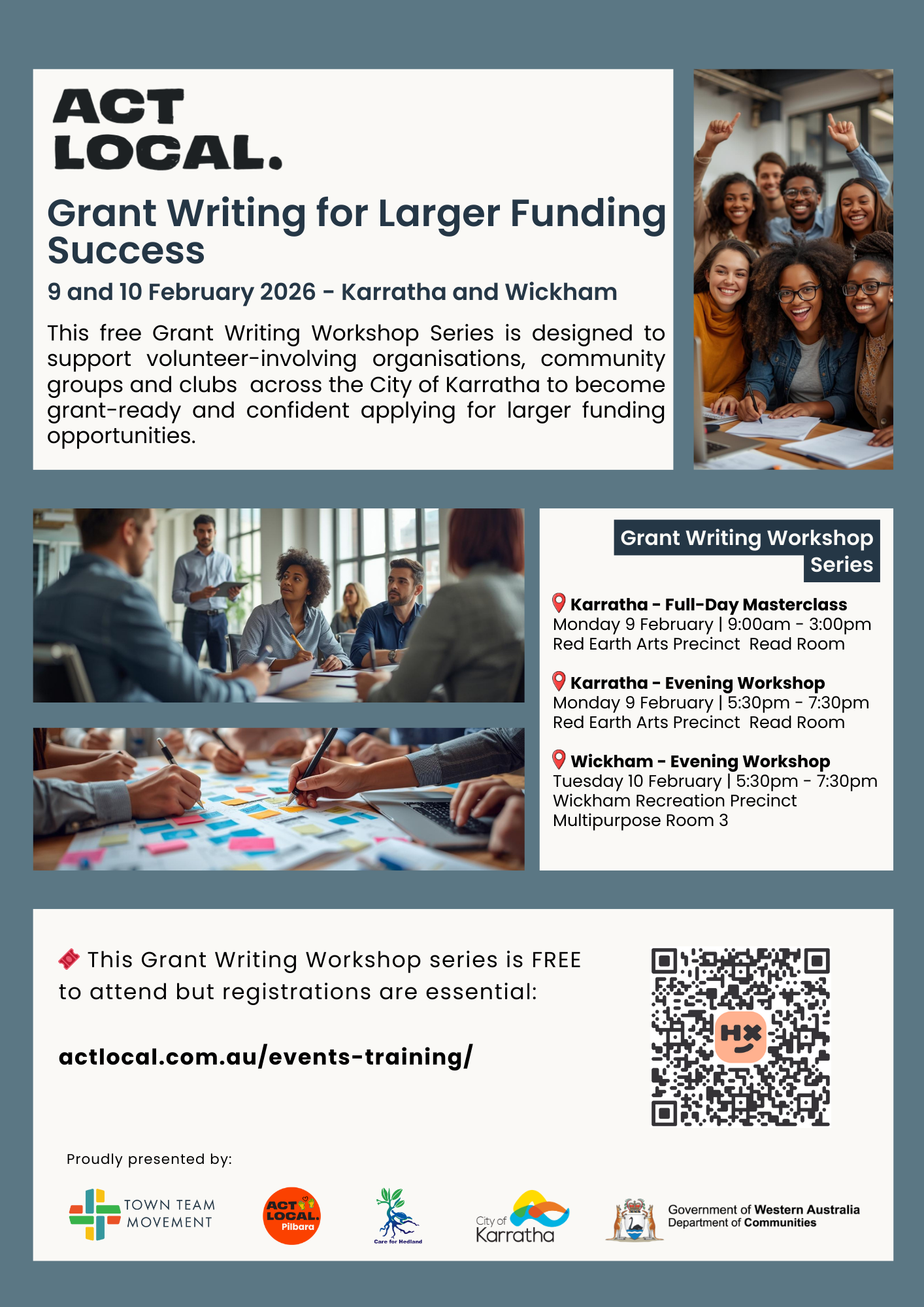 Book via https://events.humanitix.com/grant-writing-workshop-series-act-local-karratha