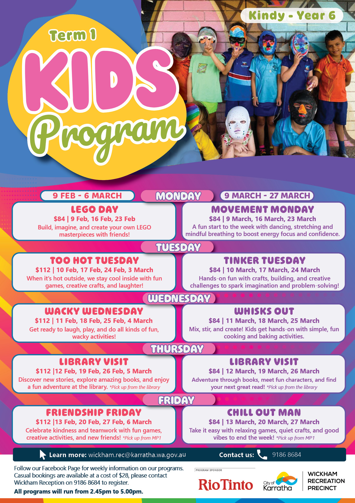 Complete the registration form and email to wickham.rec@karratha.wa.gov.au or call 9186 8684 to register.BOOK NOW: