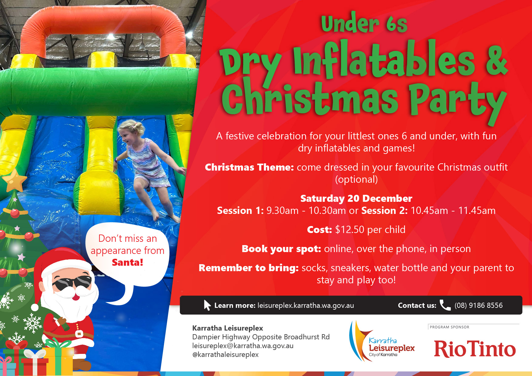 Our Under 6’s Christmas Party features dry inflatables, games, and a very special visit from Santa!