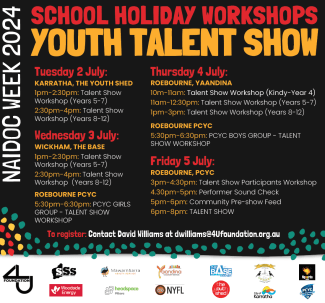 Monday 7 July from 11am to 3pm at the Ngurin Centre, Roebourne.