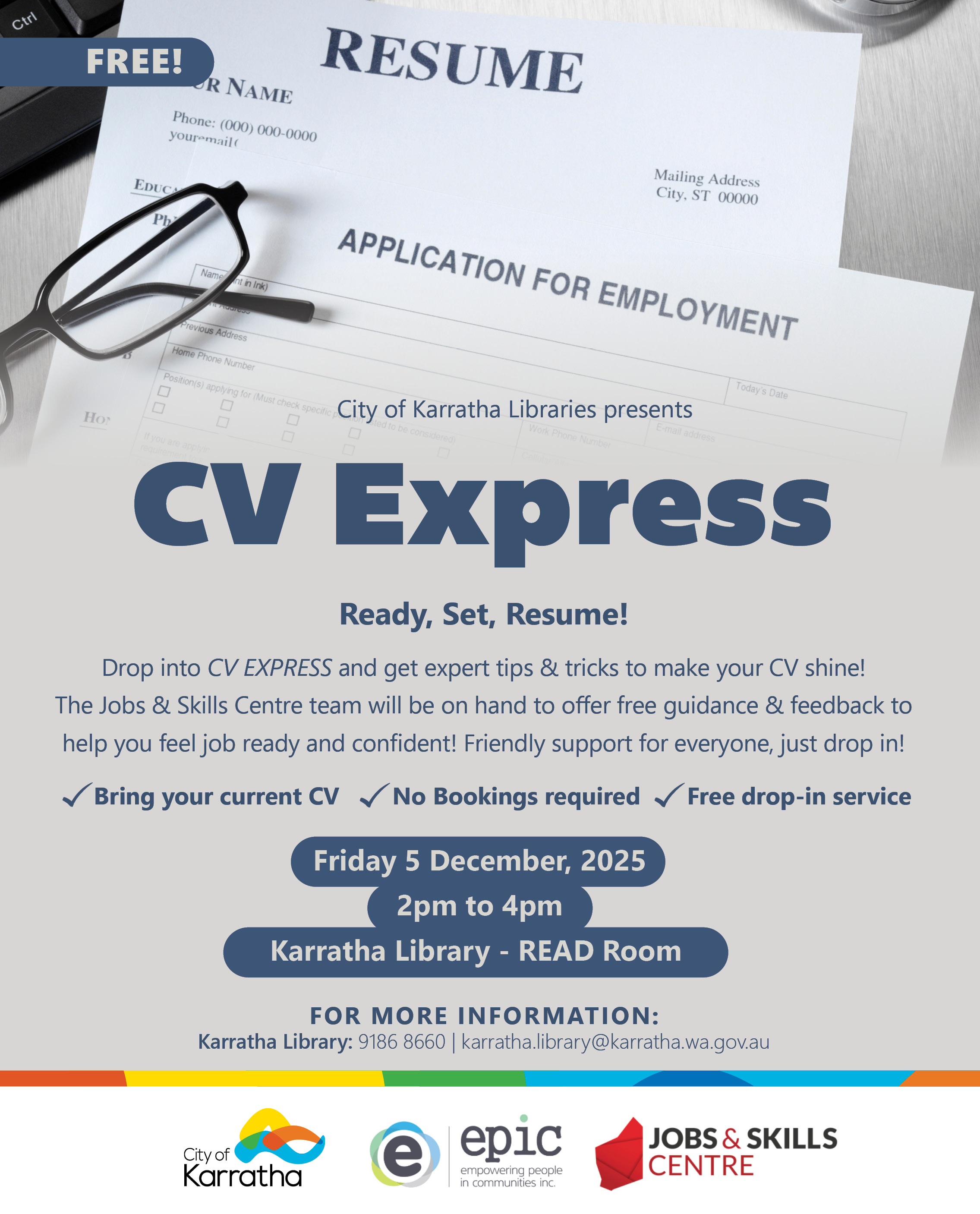 City of Karratha Libraries presents CV Express. Ready, Set, Resume!