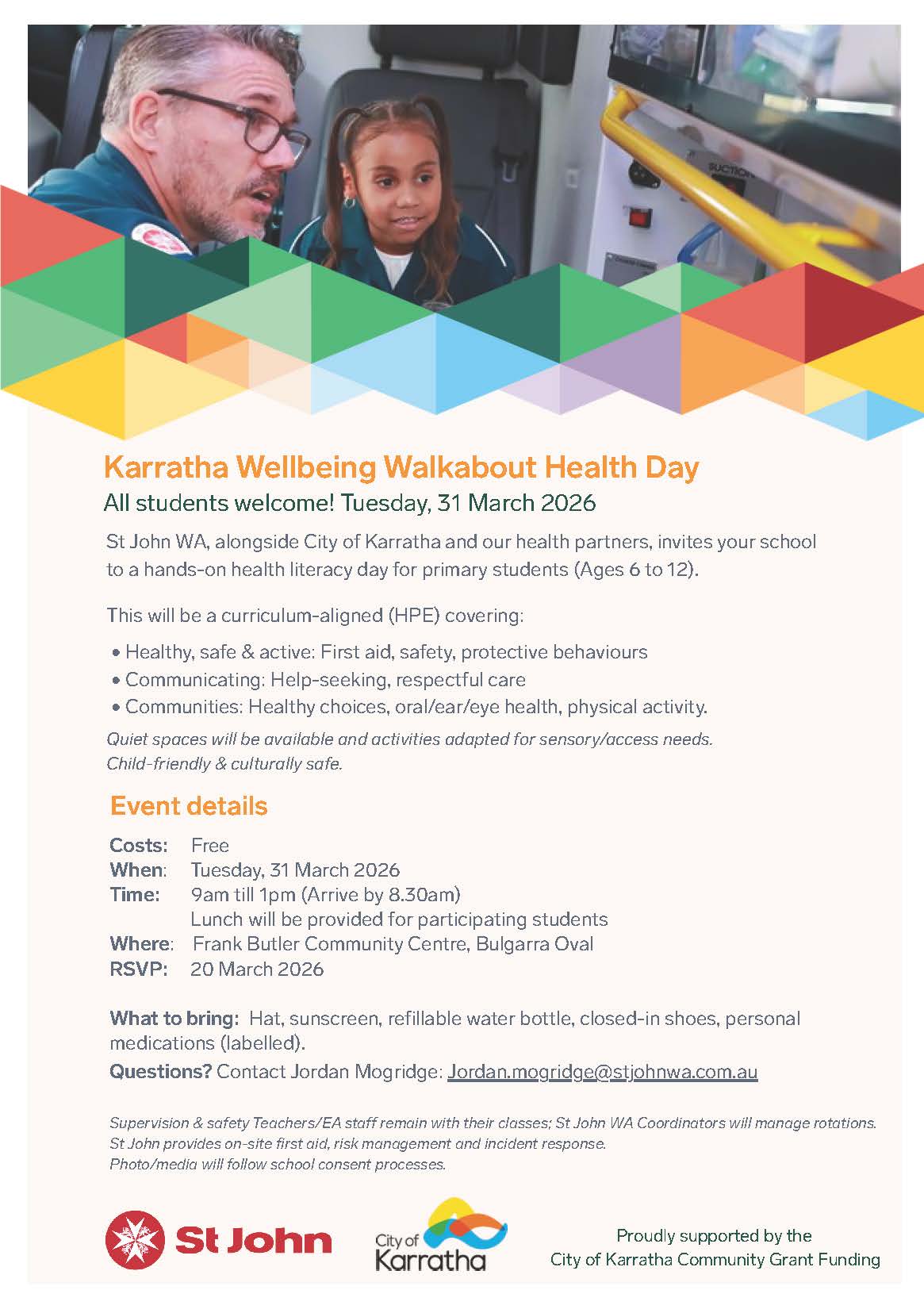 St John WA, alongside City of Karratha and our health partners, invites your school