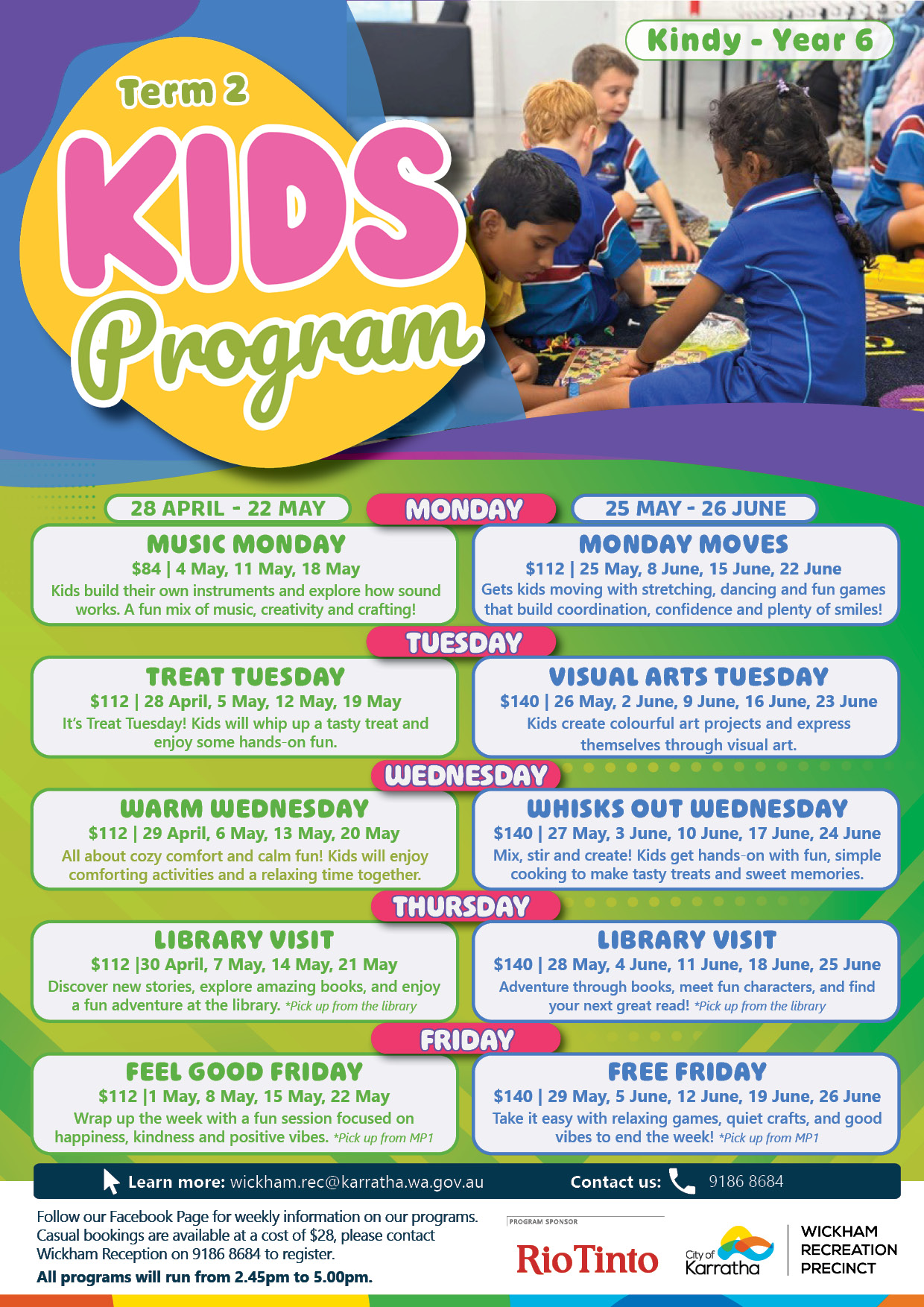 Complete the registration form and email to wickham.rec@karratha.wa.gov.au or call 9186 8684 to register.