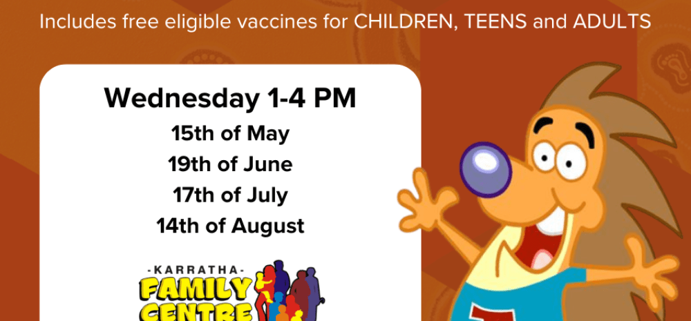 Karratha Family Centre and Karratha Population Health have partnered to provide further access to free vaccines for eligible community members. Every third Wednesday, Karratha Population Health nurses will be at the Karratha Family Centre in the afternoon. So if you or a family member requires vaccinations, this is a great time to pop in as the nurses will be there from 1pm to 4pm, making it easy for after school pickup.