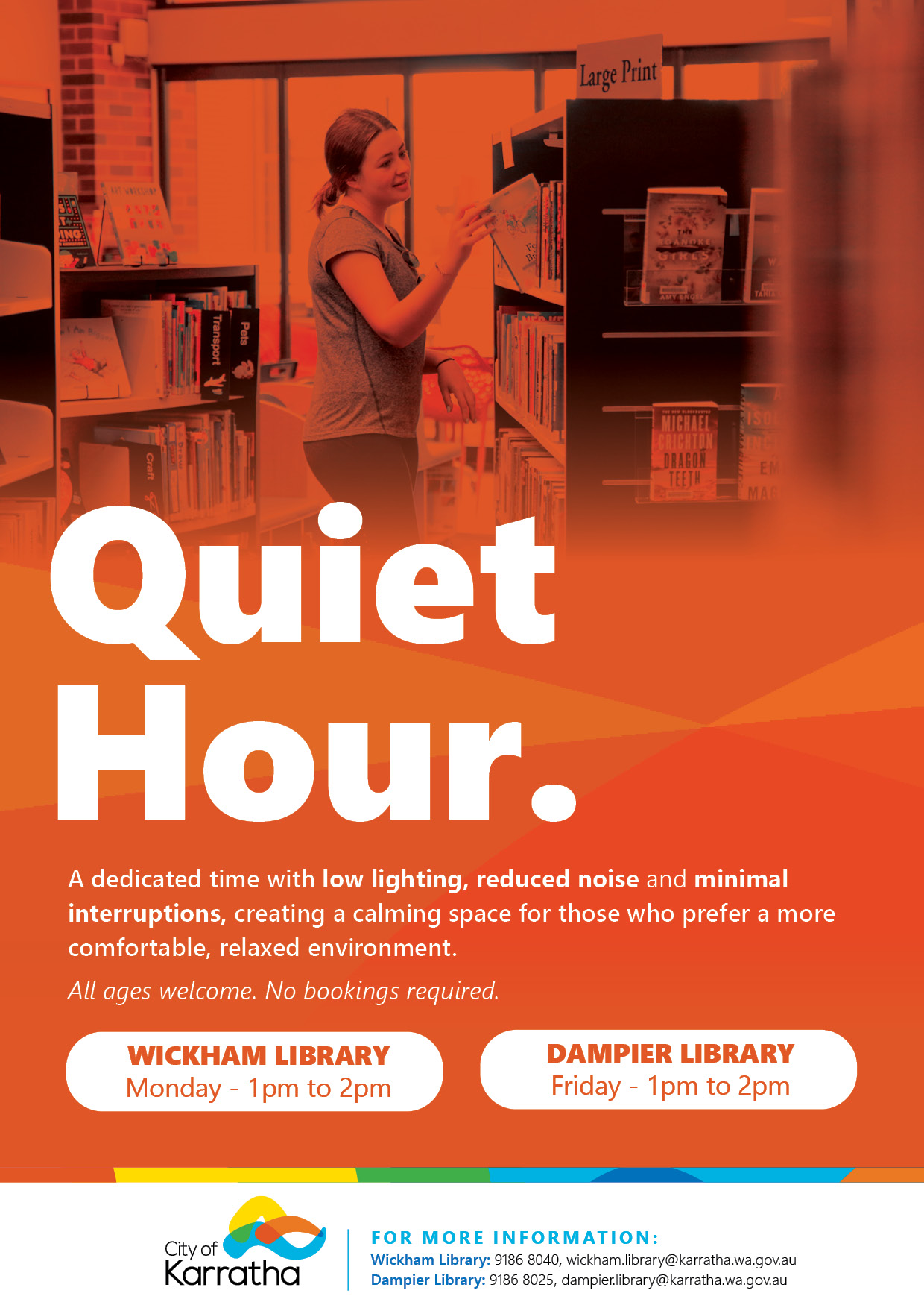Take a break from the buzz and enjoy a peaceful visit during Quiet Hour, a dedicated time with low lighting, reduced noise, and minimal interruptions. This calm and welcoming environment is designed for anyone who prefers a more comfortable, relaxed space to browse, read or unwind.