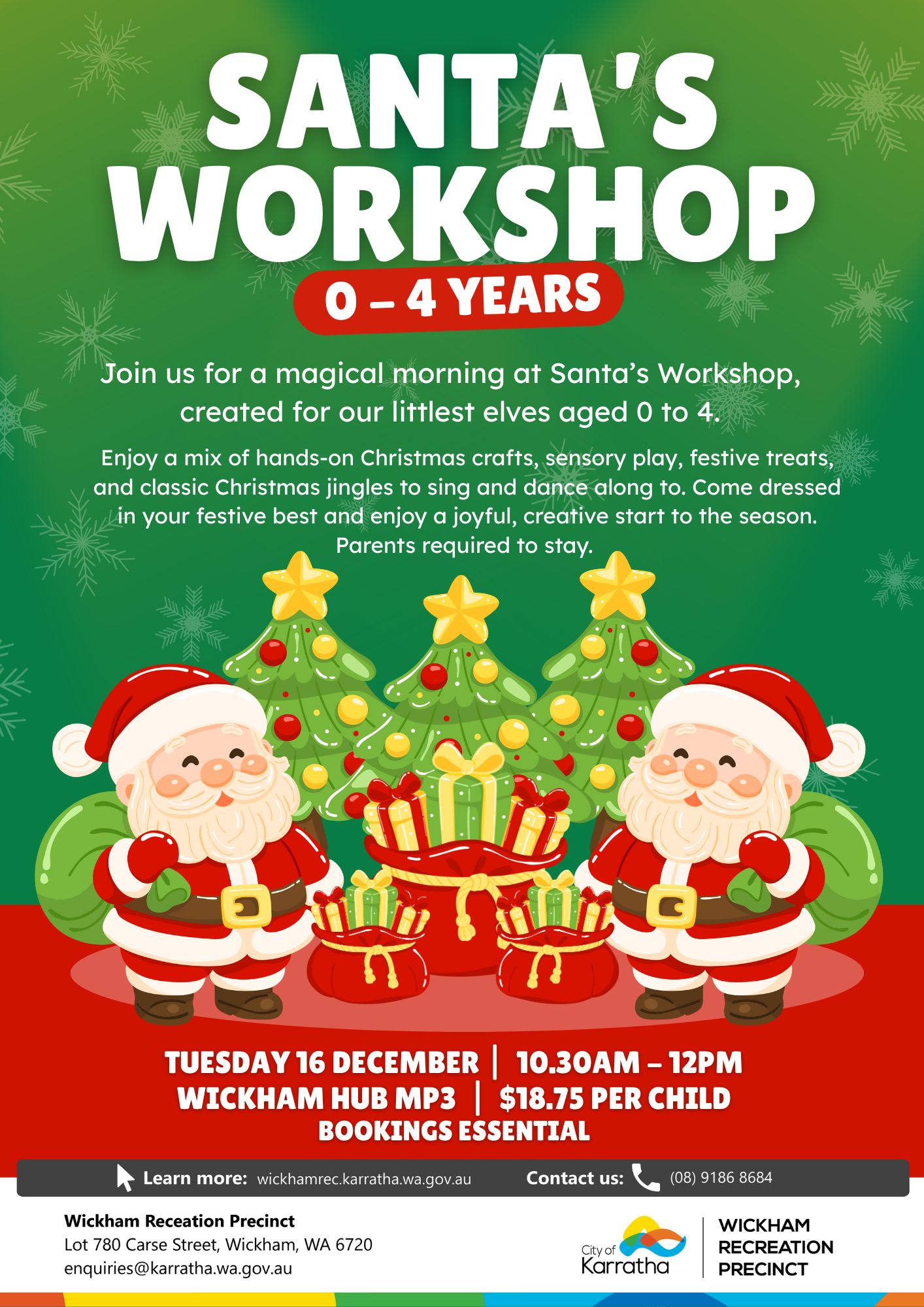 Step into the magic of the season with our special Santa’s Workshop just for little ones aged 0 to 4!