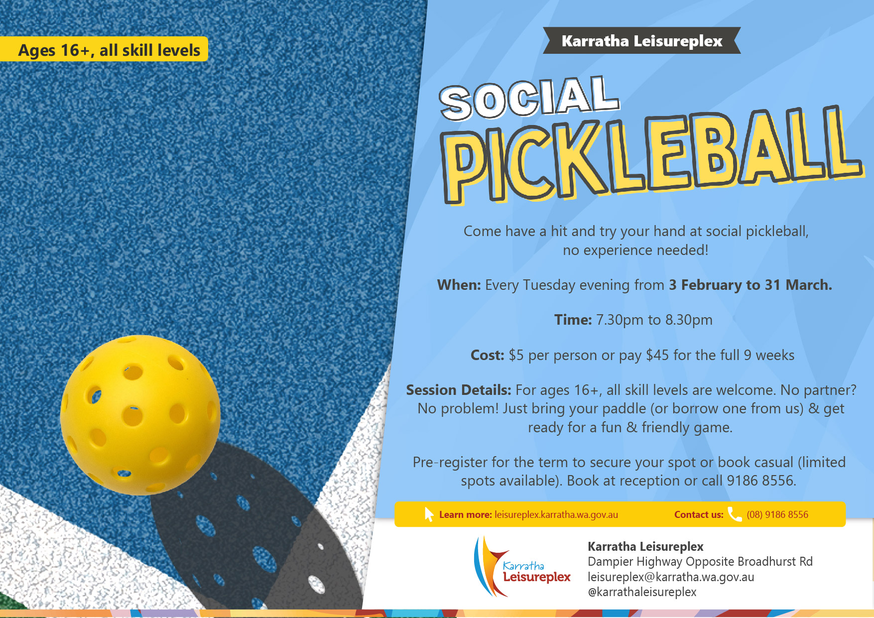 Come along and try social pickleball, no experience needed!