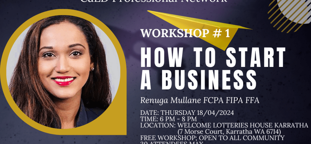 Renuga Mullane, a highly experienced and accomplished professional with designations FCPA FIPA and FFA, will be presenting a workshop on 'How to Start A Business' in Karratha. Renuga will guide aspiring entrepreneurs through the process of starting businesses. This workshop will cover essential topics such as business planning, financing, marketing, and legal considerations, providing attendees with valuable insights and practical tips to help them succeed in their entrepreneurial endeavours. Join us for this free informative and empowering workshop led by our CaLD talent.