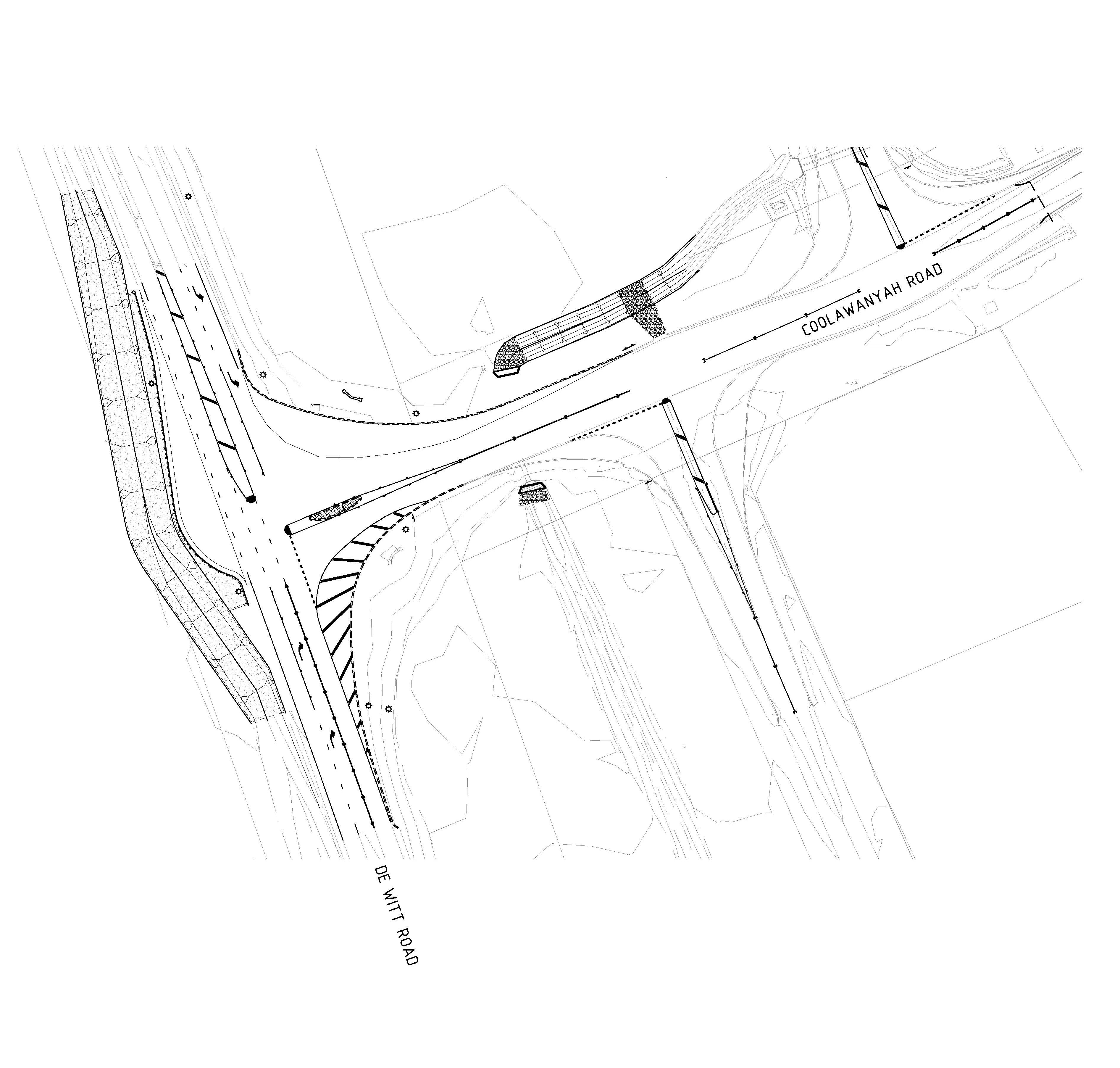 The Coolawanyah Road and De Witt Road Intersection Upgrade involves widening the intersection, resurfacing the road, upgrading culverts and installing additional streetlights to improve visibility and safety. The works will address issues identified in previous Road Safety Audits, including limited space for heavy vehicles, faded line markings and inadequate lighting. Updates to traffic islands and line markings will also be undertaken in line with audit recommendations.